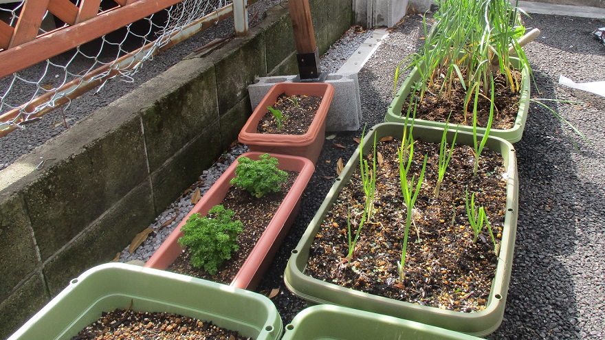 現在は空芯菜、きぬさや、大葉、小葱、にんにく、みょうがを栽培中です。