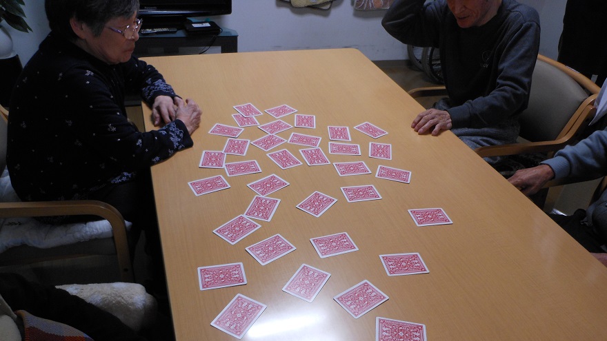 毎日、レクリエーションをしているのですが、今の流行はトランプです。