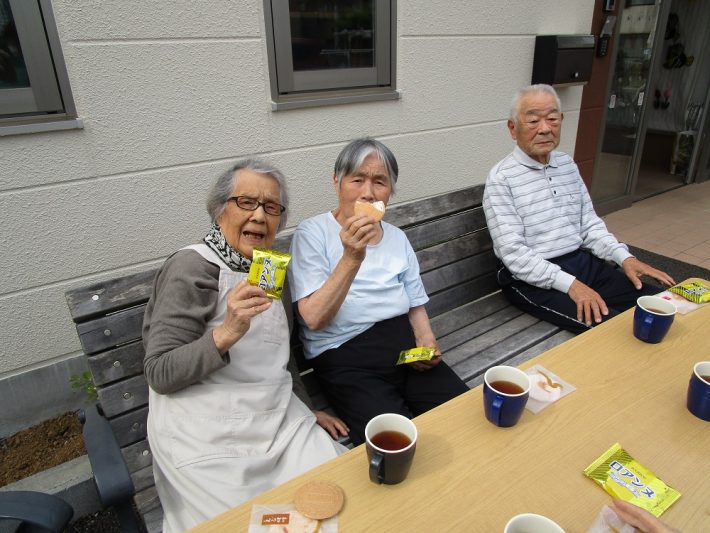 天気の良い日などは野外での“お茶会”や“お散歩”、建物内では“家事”や