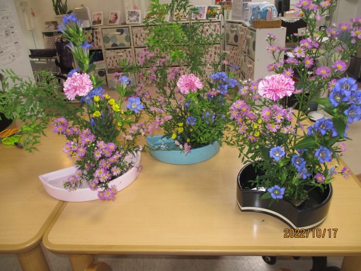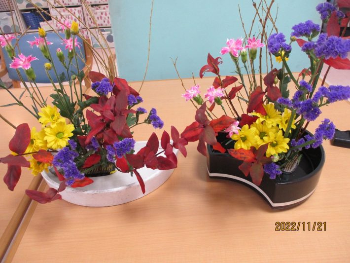 生け花の心得のあるスタッフが講師となり、参加を希望されたご利用者さまと共に