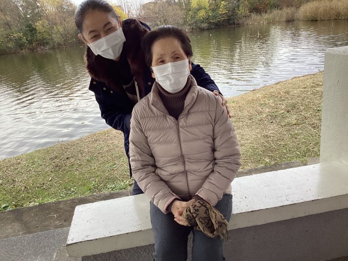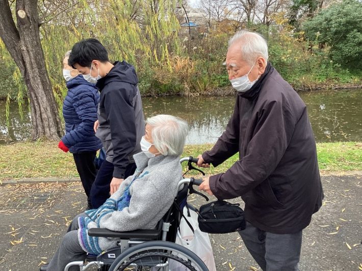 普段、外出時は車いすを使用している方も、歩いて公園内をお散歩しました。