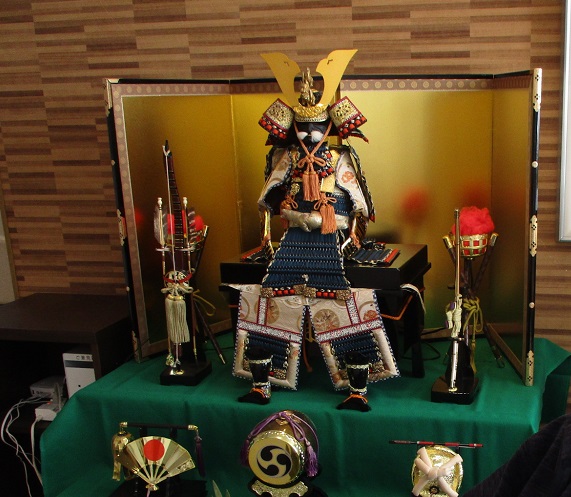 4月中旬、ご利用者さまにお手伝いいただき、五月人形の飾り付けを行いました。