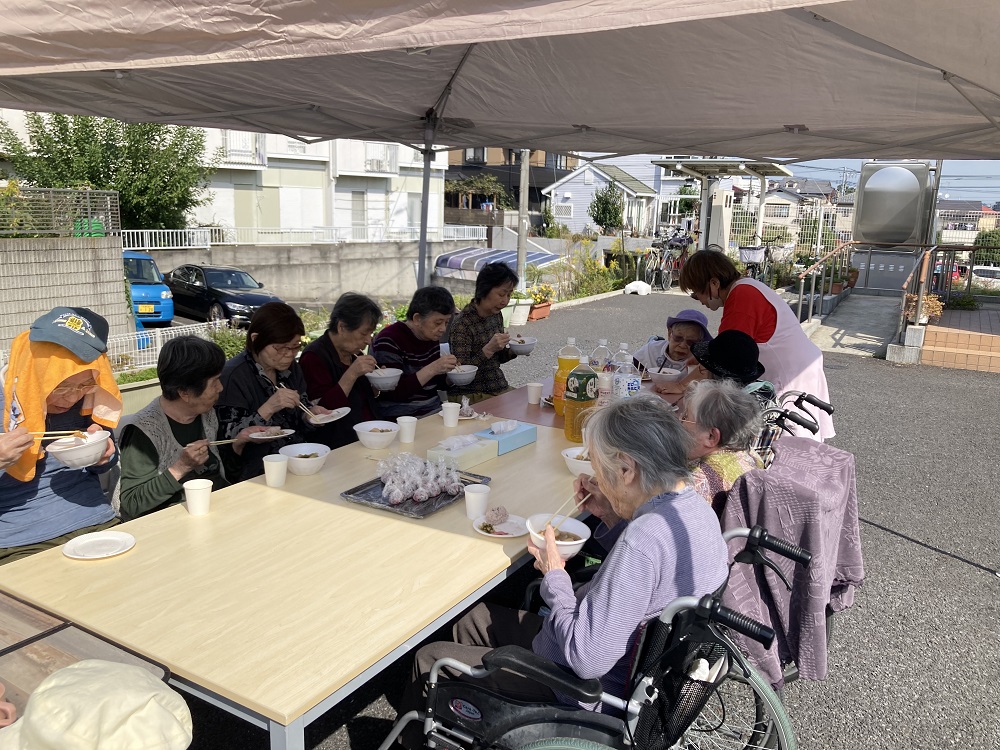 昨年とは違い、食べ終わったら日差しが強いから部屋に帰るという方が多数いました(笑)