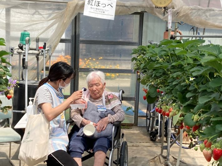 いちご狩りはとても楽しく、ほとんどの方が笑顔で過ごされていました。