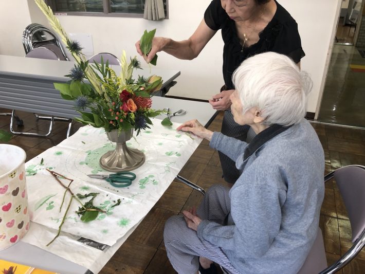 生け花の資格を持った先生が一人一人ご利用者さまに優しく指導して下さり、