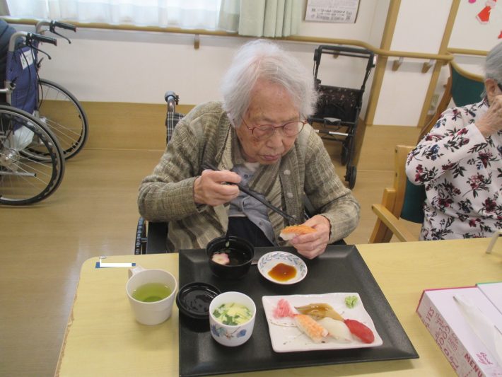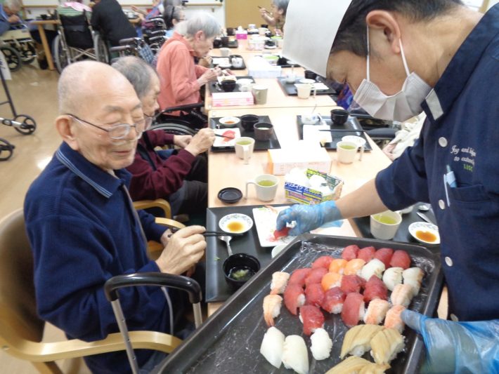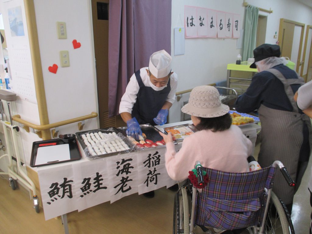 今回、施設では3回目になる「お寿司バイキング」が開催されました。