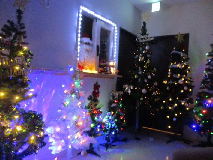 毎年少しずつ増えた大小のクリスマスツリーは9本になりました。