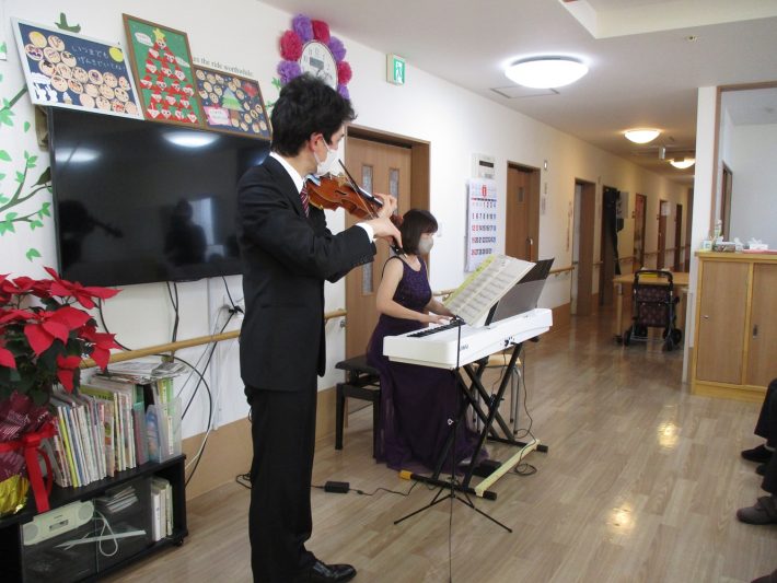 1月にはバイオリンとピアノ演奏のボランティアさんが来てくださり、