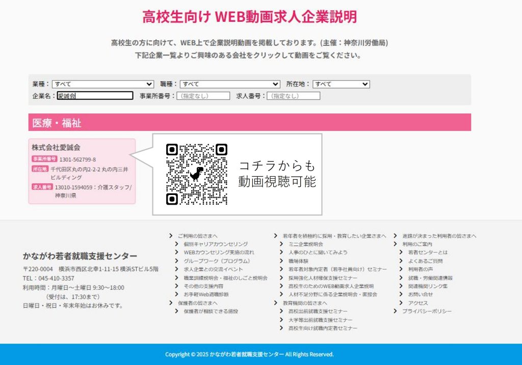 で実施している【高校生向け WEB動画求人企業説明】に掲載を開始しました!