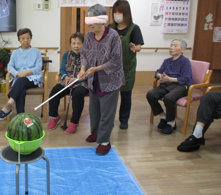 8月19日。納涼会はまずはスイカ割りからスタート。