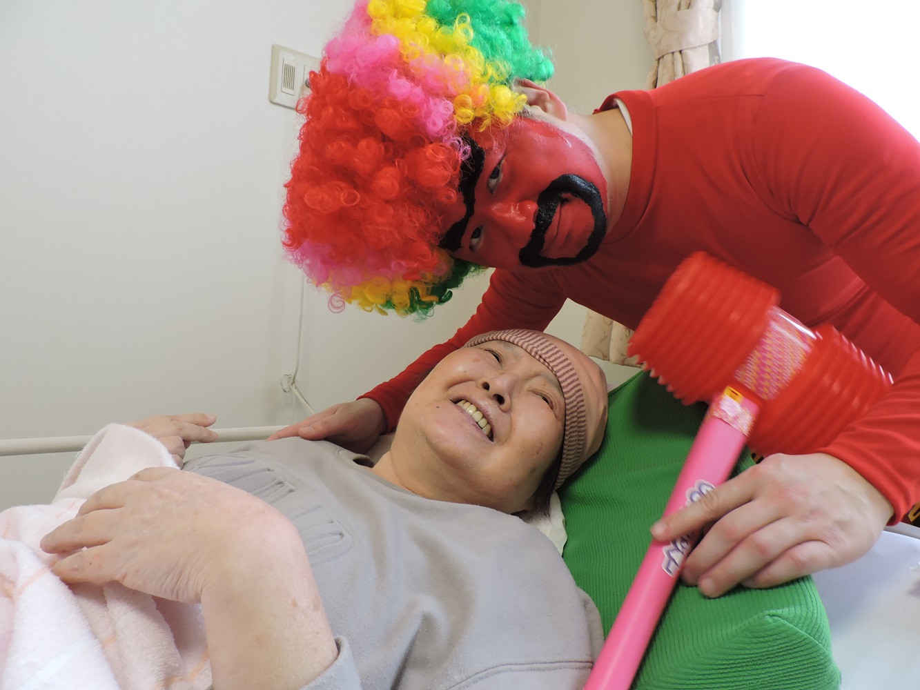 節分の日には、施設長扮する赤鬼が各階に登場。