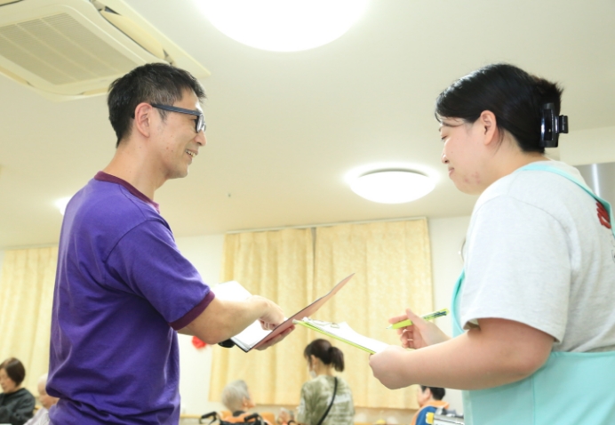 生活支援や見守り、記録の補助など、経験や体力に合わせた業務分担を行っています。