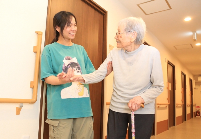 生活支援や見守り、記録の補助など、経験や体力に合わせた業務分担を行っています。