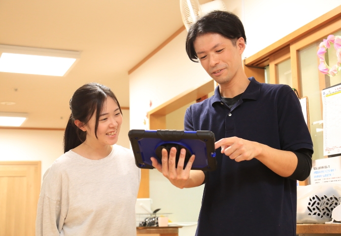 生活支援や見守り、記録の補助など、経験や体力に合わせた業務分担を行っています。
