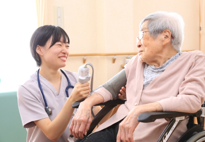 バイタルチェックや体調確認を行い、日々の小さな変化にも気づけるよう丁寧に関わります。