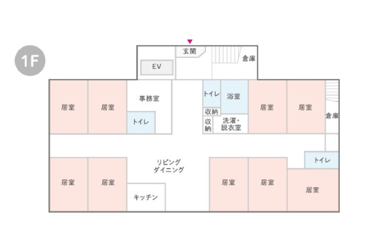 生活リズムの制限はできるだけ設けず、ご利用者さま同士がお互いに支え合いながら、閑静な住宅街で家族のように生活していただけます。